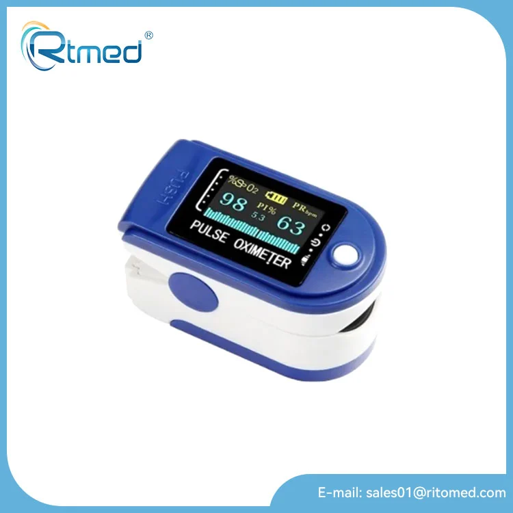 Denne RTMed fingerspidspulsoximeter er et lille, bærbart medicinsk udstyr, der klipper på fingerspidsen for at måle iltmætning (SPO2) og pulsfrekvens i blodet. Det fungerer ved at skinne lys gennem fingerspidsen og måle, hvor meget lys der absorberes, hvilket indikerer niveauet for ilthæmoglobin. Enheden viser derefter SPO2 -procentdelen og pulsfrekvensen på en skærm.