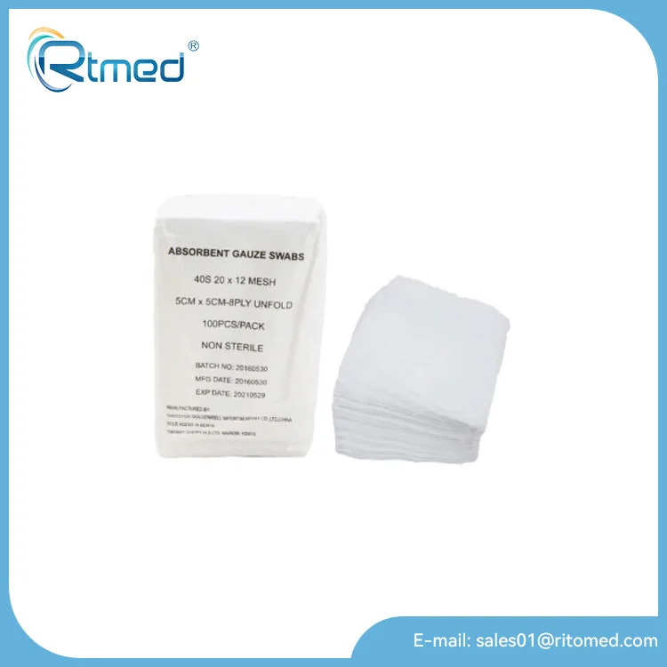 Denne RTMED-gazepodning er en lille, absorberende firkant af gazemateriale, der bruges til sårpleje. Gazepodepind kan være steril eller ikke-steril. Ikke-sterile podepinde kræver sterilisering før brug i kirurgiske eller følsomme applikationer.