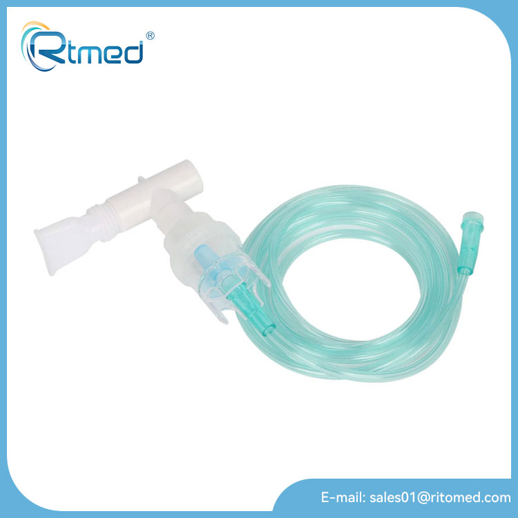 Denne RTMED-nebulisator med mundstykke er en medicinsk anordning, der bruges til at levere medicin til patienter gennem inhalation af forstøvede lægemidler, med en slange, der forbindes til en gasstrømsregulator for at sprøjte gas ind i en medicintåge. Patienter kan inhalere medicinen gennem munden for at behandle luftvejssygdomme som astma, bronkitis, lungebetændelse og mere.